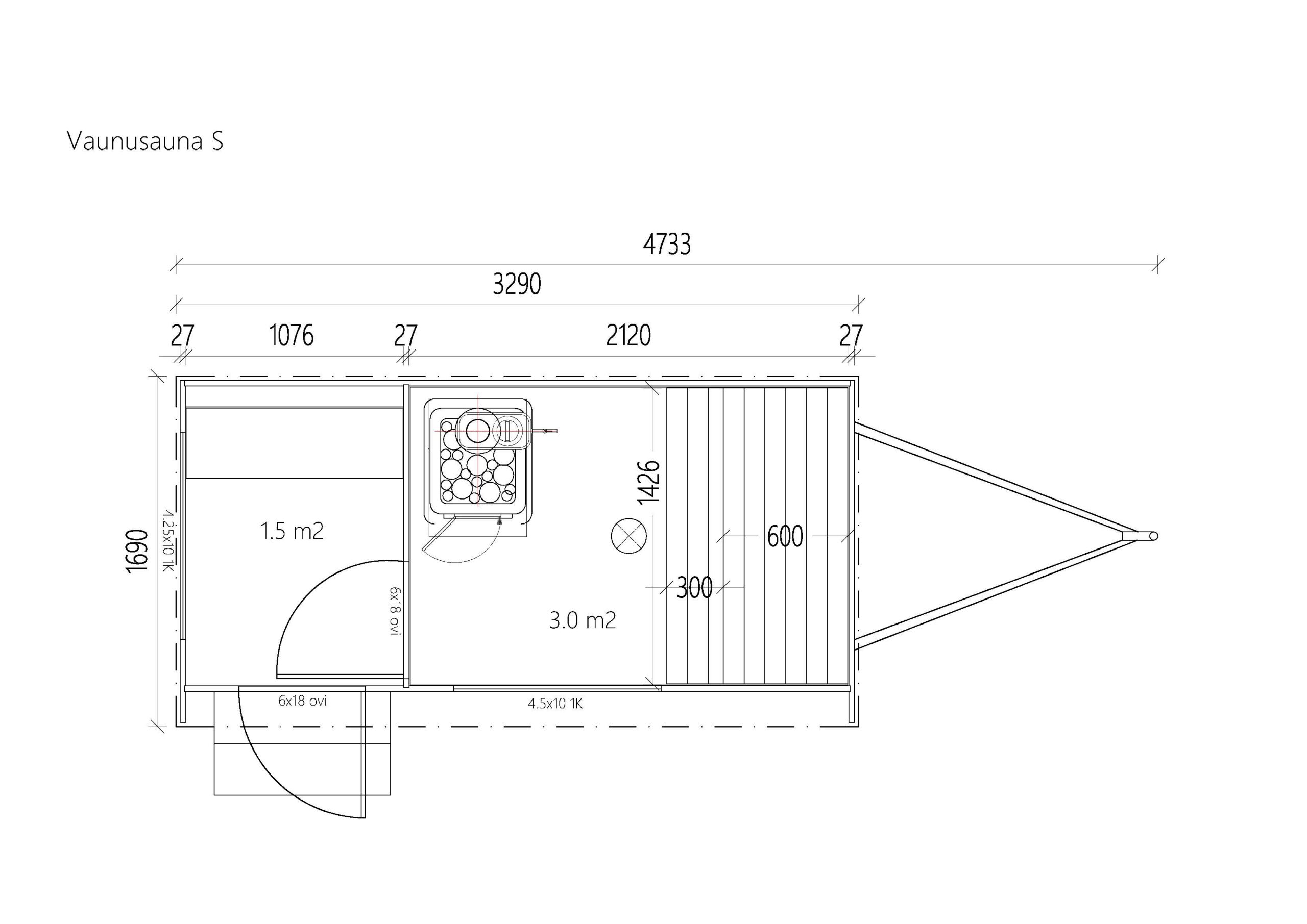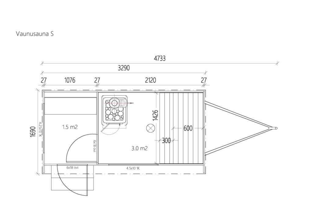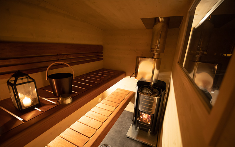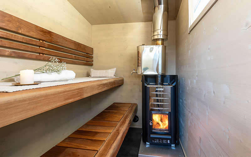 • Harvia M3 wood stove, protective walls, protective base, sauna rocks