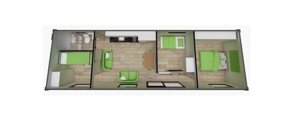 Perfect for families looking, this three-bedroom transportable building offers a kitchen, family bathroom, and wardrobe storage in each room. With its thoughtful layout and ample storage, it provides a comfortable and organized living environment for larger households.