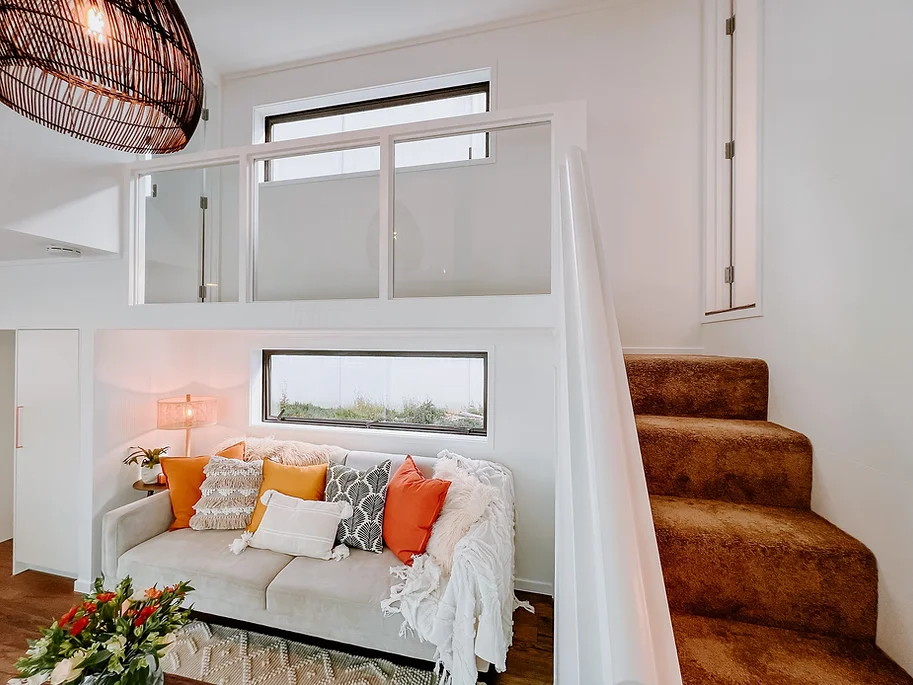 WALKWAY - a full height walkway above the lounge area safely connects the upstairs bedrooms.