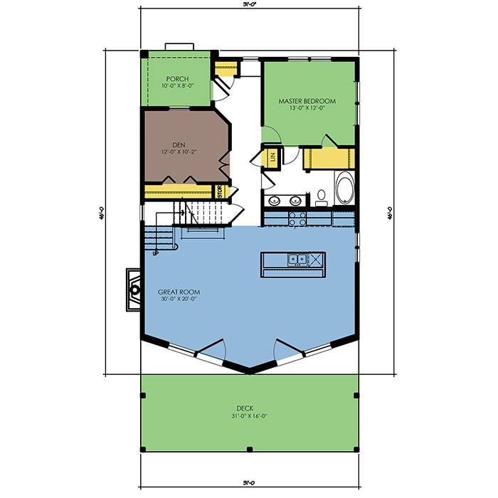 A part of our vacation series, the delevan floor plan features 1 bedroom and 2 bathrooms with a foot print of 31x46 feet and 1565 total square feet of living space.