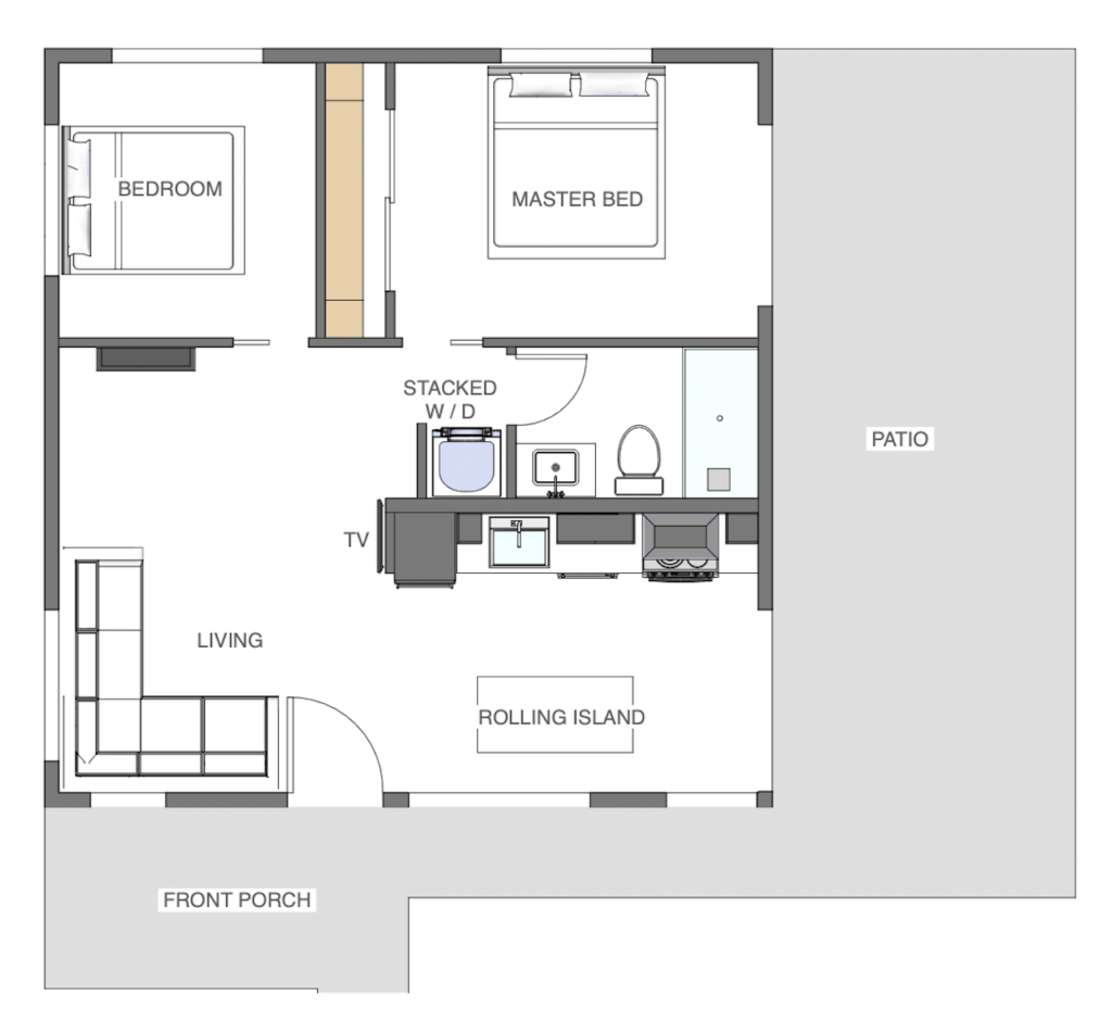 2-bedroom, 1-bath + an optional loft. 600 SQ FT.